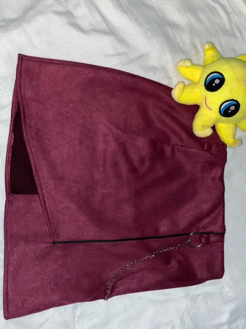 Falda aterciopelada 💕. Hola chicas lindas les traigo esta faldita de tela aterciopelada,trae detalle en la pierna que es como para resaltarla y trae una cadenita muy linda al lado,es talla chica pero viene grande💕