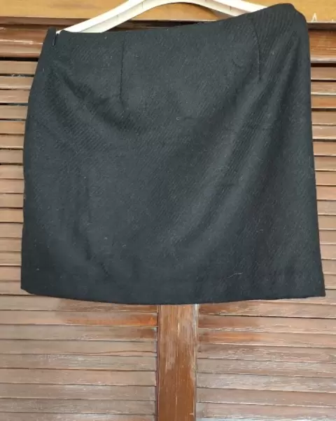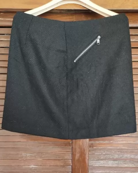 Única falda de lana negra con cierres a los costados, ideal para un look casual o formal, combinala con cualquier prenda y realza tu outfit para lucir increíble.Cierre en parte lateralMedidasAncho: 43 cmLargo: 45 cmMaterial: lana y poliester