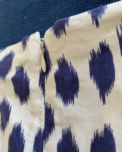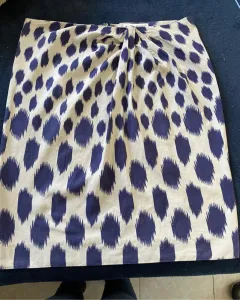 Falda beige con motas moradas. Falda muy bonita ajusta en la cadera, estira poco, tiene un fruncido al frente que hace muy bonita figura a la altura de las caderas, con forro, cintura 80, cadera 98, largo 51