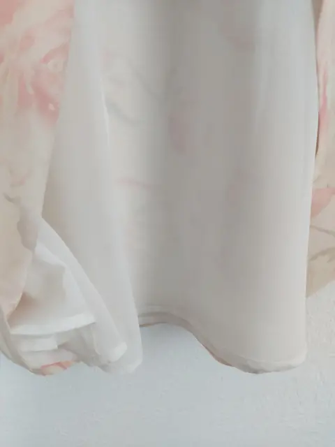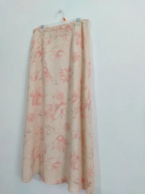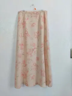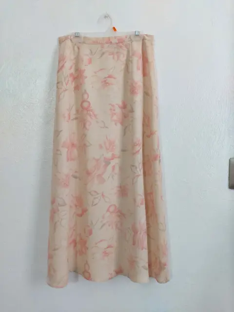 Falda beige larga floral. Color beige con estampado, tela poliéster, de hermosa caida, tiene forro.No tiene strech.Talla 2 queda bien a XS y S.Cintura: 34 cmLargo: 84 cm.Sin detalles
