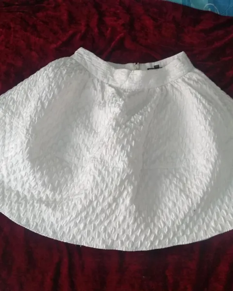 Falda Blanca. Falda Blanca, súper bonita con medio vuelo con forro corte estilo princesa, trae una textura que la hace lucir más, en la etiqueta dice talla 00 me faltó como un dedo para cerrar pero ya le había quitado la etiqueta.