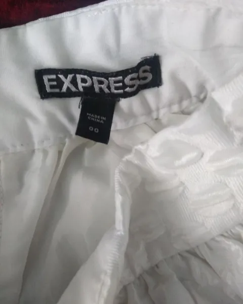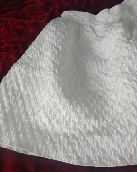 Falda Blanca, súper bonita con medio vuelo con forro corte estilo princesa, trae una textura que la hace lucir más, en la etiqueta dice talla 00 me faltó como un dedo para cerrar pero ya le había quitado la etiqueta.