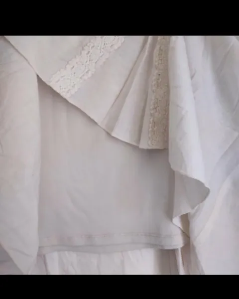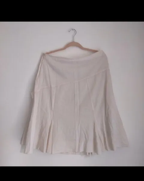 Falda blanca algodón y encaje. Santísima! 🙏Midifalda color hueso, 100% algodón. Con olanes y encaje de adorno.Apertura amplia.Fue comprada en Oaxaca, es artesanal.T:GMedidasCintura 90cmLargo 94cm