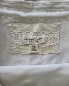 Falda blanca con encaje Abercrombie. Falda blanca de algodón con forro y jareta para ajustar. Es stretch. Las medidas se tomaron sin estirar. Tiene detalles que se ven en la ultima foto. Talla: XS Medidas: 36 cm cintura, 44 cm de cadera y 43 cm de largo.
