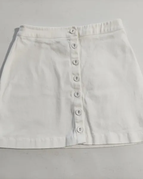 Falda blanca en línea A con botones de Forever 21. Talla M.Medidas: 36cm cintura, 47cm cadera. Largo:38cm✨⭐Perfectas condiciones✨PROMO: Leva esta pieza por el precio o 3X2 Lleva 3 piezas de todo mi closet y gratis la de menor valor, sólo pagas 2 + Promo de envío✨Esta pieza se entrega sanitizada
