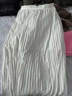 Falda blanca en perfecto estado, tiene cierre y broche en un lado, y medio fondo, no transparenta, la blusa sólo la puse como referencia, la vendo a parte Cintura 35 cmLargo 99cm