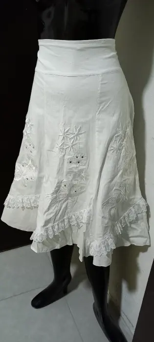 Falda blanca strech de mantilla fresca blanca. Gracias por tu visita ..En esta ocasión te traemos:..................................................................................TALLA mMARCA sin etiqueta COLOR blancoSTRECH siTELA mantillaMADE IN ?MEDIDAS CINTURA 41 cm CADERA 54 cm LARGO Las medidas son de lado a lado de la prenda