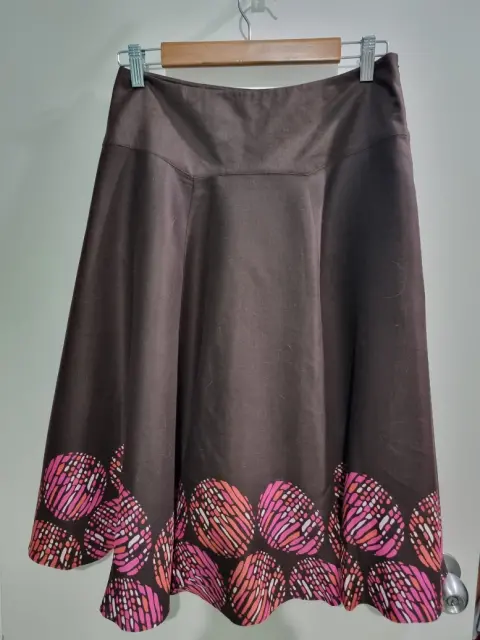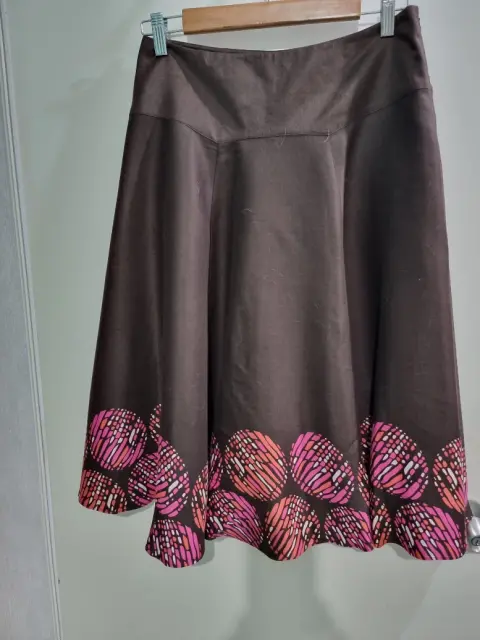Falda circular cafe talla 4. Hermosa caída, se entalla en la cadera, trae cierre oculto, prenda de excelente calidad, dale una segunda oportunidad.Todas las prendas se envían limpias y listas para usar, se mandan en caja reciclada pero protegida con papel para que no se maltrate.