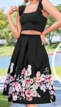 Bonita falda marca Cklass nueva con etiqueta, talla Mediana, color negro satinado con detalles de flores en la parte de inferior. Cierre imperceptible por un costado.