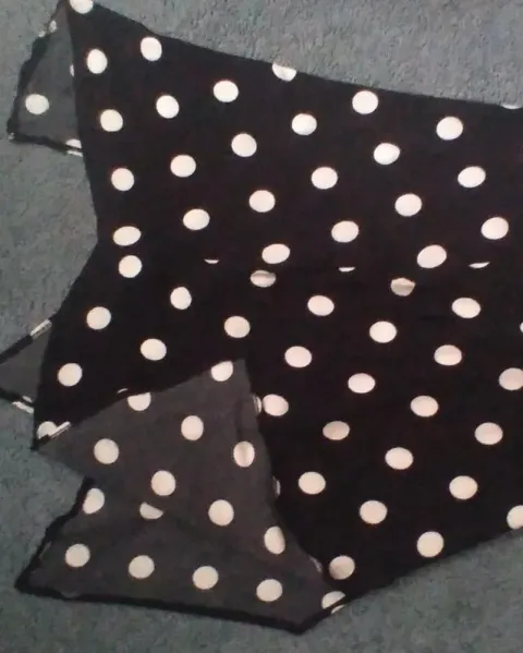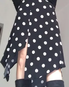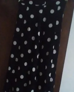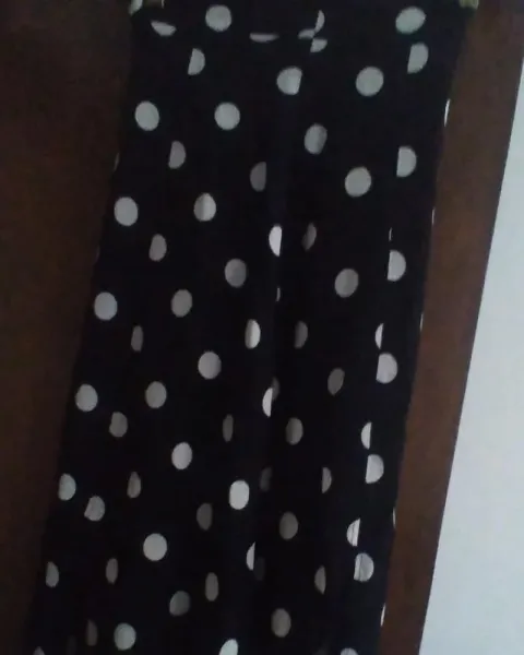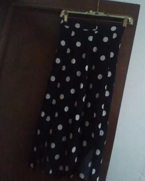 Falda color negro círculos blancos. Falda negra con lunares blancos, con picos amplia, aberturas,Tela seda lino