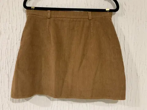 Falda con botones de pana. Si no estás segura de tu compra por favor no ofertes, ni retengas la prenda.Falda café kakiDe botonaduraTalla L 81 cm cadera x 41 cm largo, pero si eres talla M también se adaptaMaterial PanaDe un solo uso, Perfecto estado.