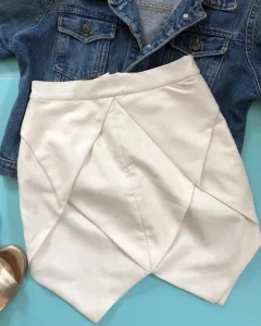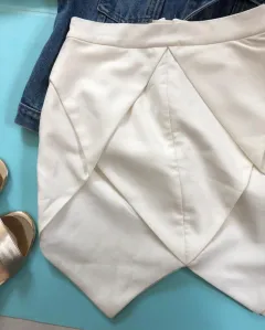 Falda con corte de picos. Falda color blanco hueso con puntas picudas en la parte de abajo, cierre completo. Ideal para usarlo este verano