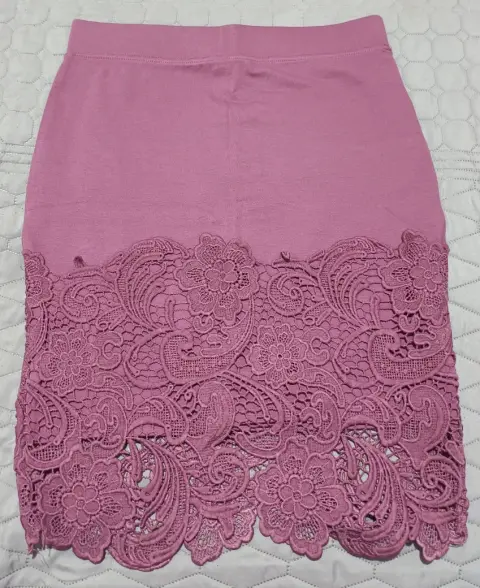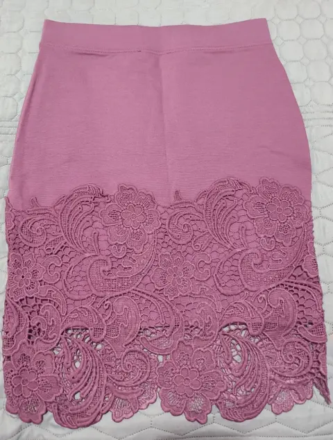 Hermosa falda, talla M, estira y se ajusta al cuerpo y a la cintura, tiene un lindo encaje al final, horma muy lindo. Medidas.Cintura. 35 cmCadera. 43 cmLargo. 53 cm