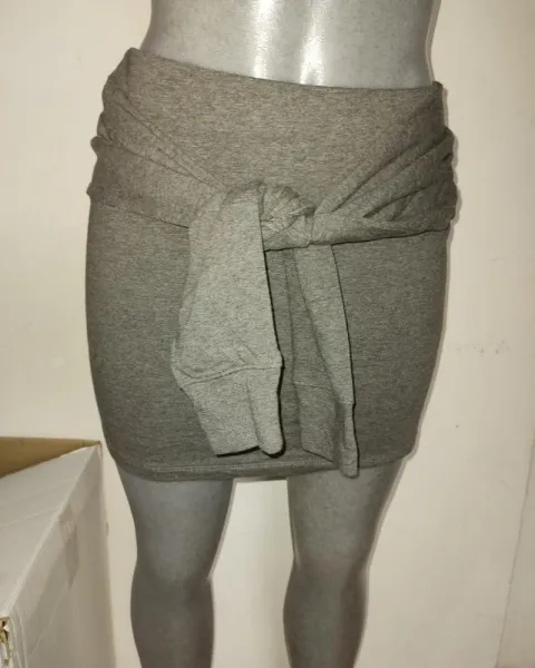 Falda con mangas. Mini falda detalle de mangas al frente.Tela deportivaColor grisEs talla XS o S