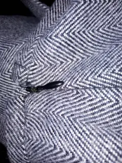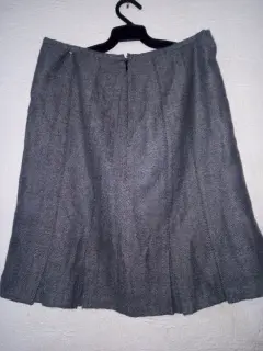 Falda con 8 pinzas color gris y negro en Zig zag, con cierre y broche, forro. De cintura 82 cm y de largo 66 cm.