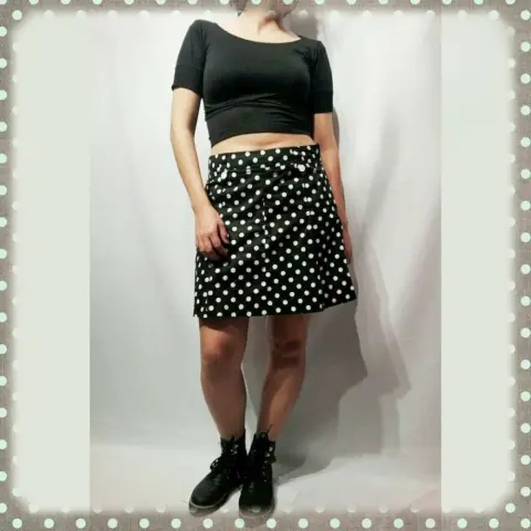 Falda con short de lunares skort. Hermosa falda con short, diseño de lunares, marca White Stag, talla 12, 97% algodón y 3% spandex, cuenta con cierre lateral .Nueva con etiqueta.Contorno de cintura 82 cm.Largo total 47 cm.