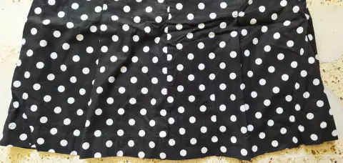 Hermosa falda con short, diseño de lunares, marca White Stag, talla 12, 97% algodón y 3% spandex, cuenta con cierre lateral .Nueva con etiqueta.Contorno de cintura 82 cm.Largo total 47 cm.
