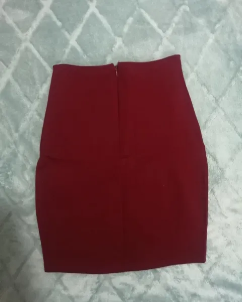 Falda corta, talla M, din ningún detalle.El color es un poco más oscuro de como se muestra en la foto
