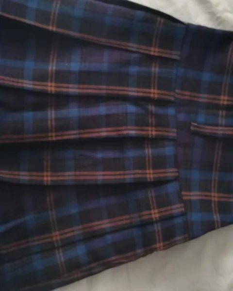 Falda corta a cuadros. Falda corta a cuadros, color azul marino, con pretina grandes para cinto mas cada o listón