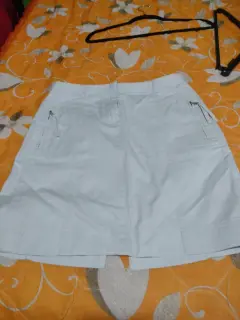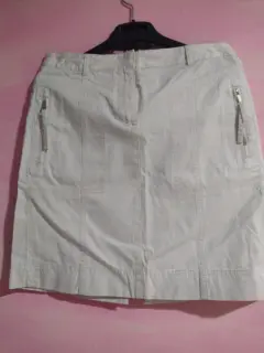Falda corta color muy claro aperlado marca loft,dice talla 4 da a una S/M tiene bolsas hermosas enfrente con cierre y bolsas atrás.