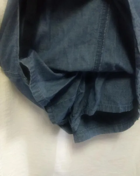 Minifalda de mezclilla ligera con short abajo, bolsas en frente y atrás, cinta en pretina, hermosa, sin detalle.