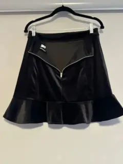 Falda de terciopelo color negra, marca H&M, con zipper en la parte de atrás. La tela estira.Largo: 44 cmCintura: 38 cm