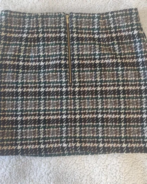 Bonita falda corta línea A, es talla 8, muy cómoda y versátil, tiene un cierre muy mono en la parte de atrás.