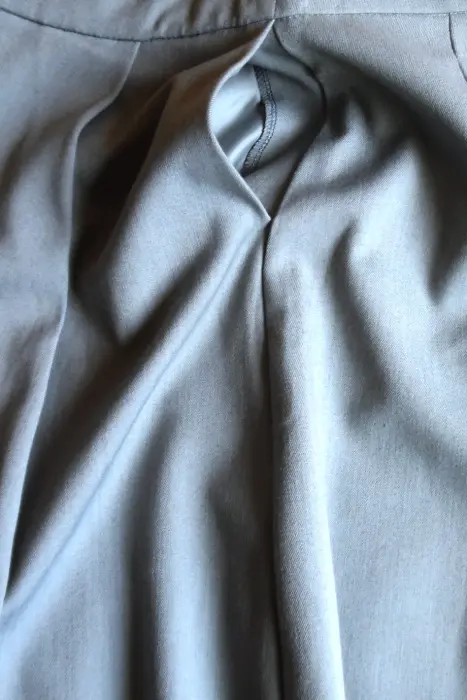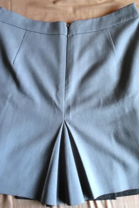 Hermosa falda Mango color gris claro.Cuenta con bolsas laterales ocultas.Tiene un tablón al frente.Cierre en la parte trasera con un broche para mayor ajuste.100% Poliester.Está en excelente estado.