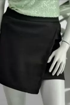 Falda corta negra, tipo envolvente, tela Spandexajustablemarca exchange talla Gde.