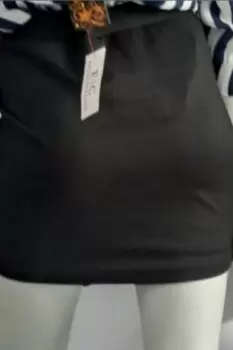 Falda corta negra. Falda corta negra, tipo envolvente, tela Spandexajustablemarca exchange talla Gde.