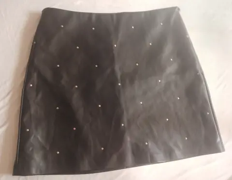 Falda corta color negros con piedras estilo vinipiel trae forro debajo y cierre en la parte trasera