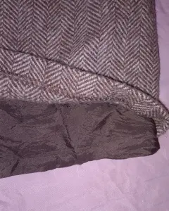 Falda cortita café. Talla S (5), perfecta para ocasiones formales, invernal, con fon y líneas blancas.