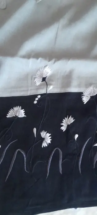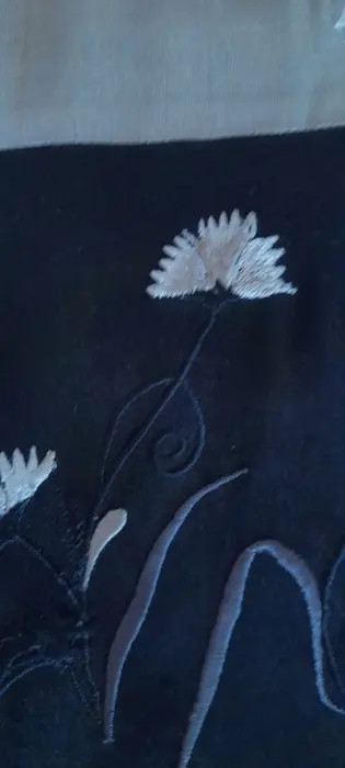 Falda cruzada con cinta. Falda larga que cierra con cintas, completamente abierta y cruza al frente, bordada en tonos de verde seco claro y negro. Nunca usada. Puede usarse como pareo para la playa o en una ocasión formal. Muy linda. Me quedo larga, mide 125 cm y abierta sobrepasa el metro 60 cm. Tiene ajuste a la cintura con pinzas. Muy linda y versátil.