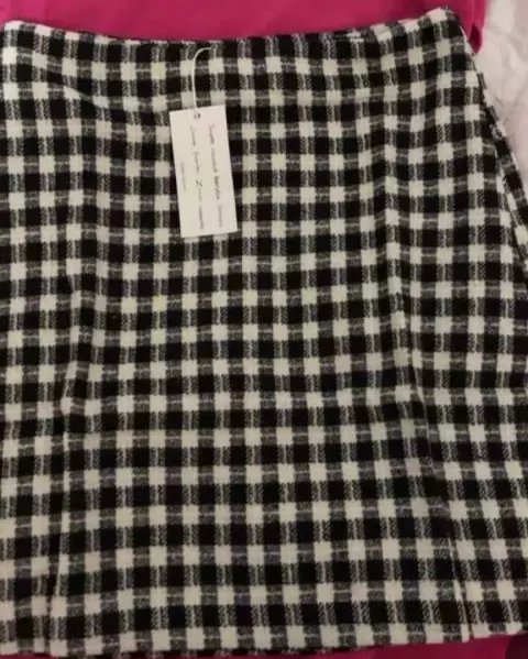 Falda de talle alto cuadros tweed, blanco y negro. La tela es gruesa y no estira. Perfecta para este otoño-invierno