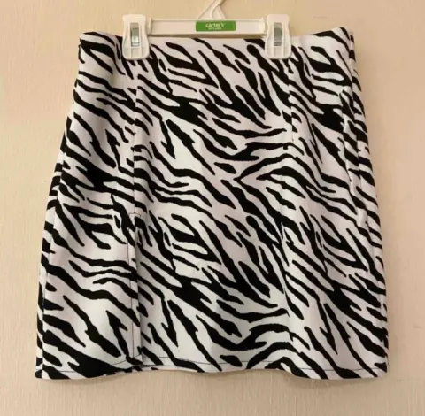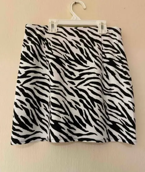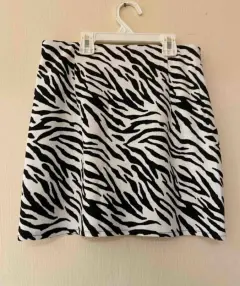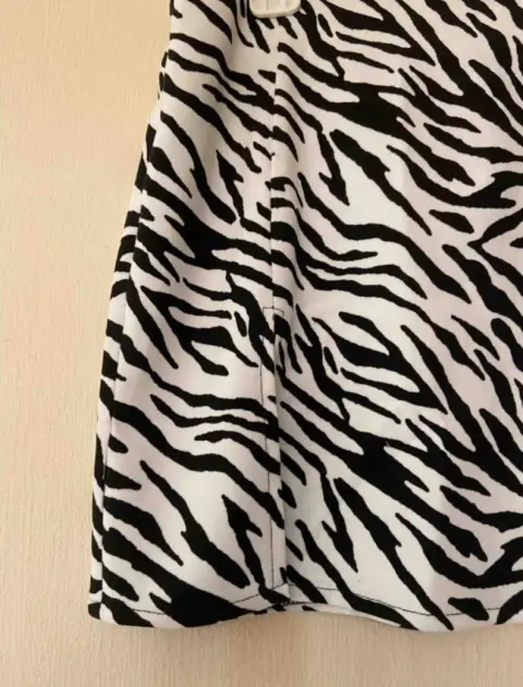 Falda con estampado de cebra, con pequeña apertura en la pierna. No tiene uso, esta nueva y no tiene ningún detalle. Talla XS