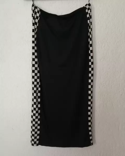 Falda de cintura elástica de tubo. Falda de cintura elástica de tubo con franjas de cuadros, con resorte en la cintura. Medidas 36 cm de ancho por 83 cm de altura. Tela deportiva, 92% poliéster y 8% espandexTalla LMarca Shein
