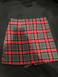 Falda de cuadros negra con rojo, entallada, ajustada y muy cómoda.