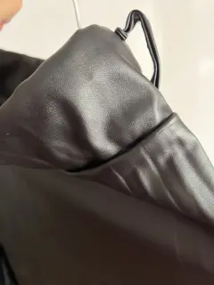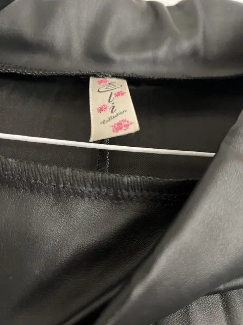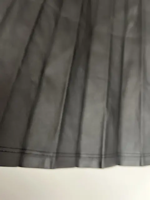Falda negra de dama de vinipiel tableada, larga a la pantorrilla, unitalla y se estira