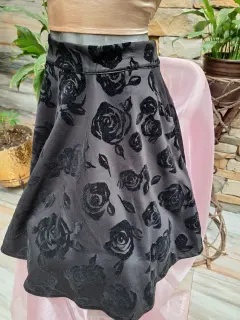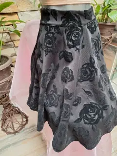 Hermosa falda con diseño de flores de terciopelo color negra con 2 bolsillos a los costados y cierre traseroFalda corte ATalla GMarca vertiche