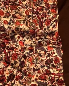 Es una falda en tonalidades otoñales como se muestra en la foto, ideal para temporada decembrina y sobre todo calientita