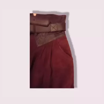 Falda de Gamuza y Piel. Hermosa y elegante falda importada de Italia de Gamuza Cafe con Piel Negra, cuenta con cinturon de piel Negro y bolsas laterales. En excelentes condiciones, una sola puesta. No tiene ningun detalle.