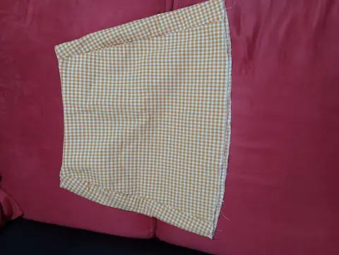 Falda de macotita. Mini falda de macotita, estira, es muy cómoda, naranja con blanco, talla XS.