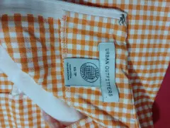 Mini falda de macotita, estira, es muy cómoda, naranja con blanco, talla XS.