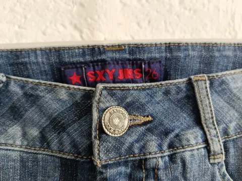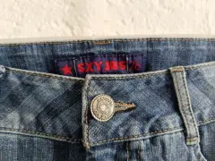 Queda mejor a talla 27.La tela es gruesa y estira poco No tiene detalles