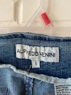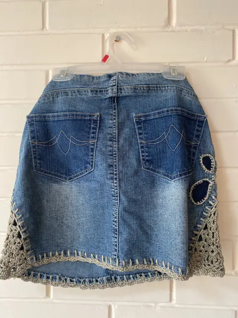 Falda de mezclilla. Falda estilo vintageMezclilla Talla 5Con bordado en los lateralesCon agujeta y cierre frontal52% reamie 43% algodón 5% spandex