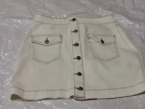 Falda tono beige de cintura mide 38 CM y de largo mide 42 CM los bolsos al frente son funcionales no tiene detalles