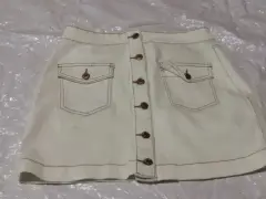Falda de mezclilla beige forever21. Falda tono beige de cintura mide 38 CM y de largo mide 42 CM los bolsos al frente son funcionales no tiene detalles