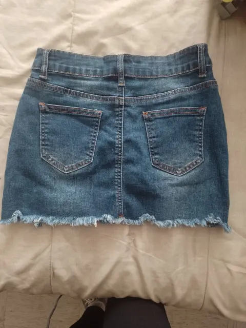 Bonita falda de mezclilla de marca Shein....está nueva solo me la probé pero no me quedo ..es talla mediana pero prácticamente es talla chica ...la faldita es corta y está muy linda ...buena tela ..si la recomiendo 😃
