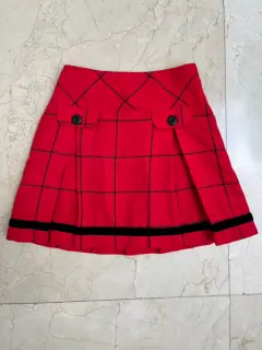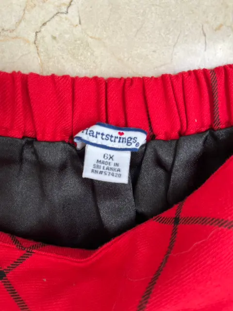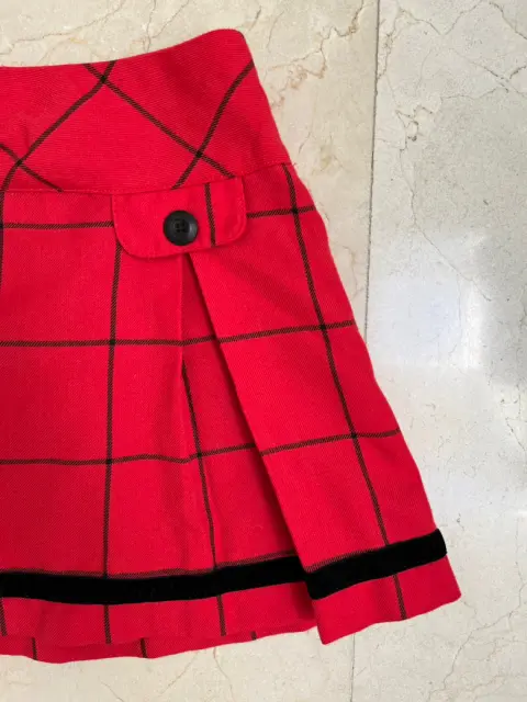 Hermosa falda de niña talla 6Roja con cuadros negrosLa cinta de abajo negra es de terciopelo, de la marca hartstingsCintura de resorte