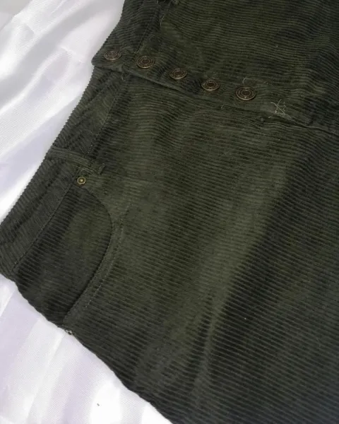 Falda de pana. Falda de pana verde militar con bolsas traseras y botones